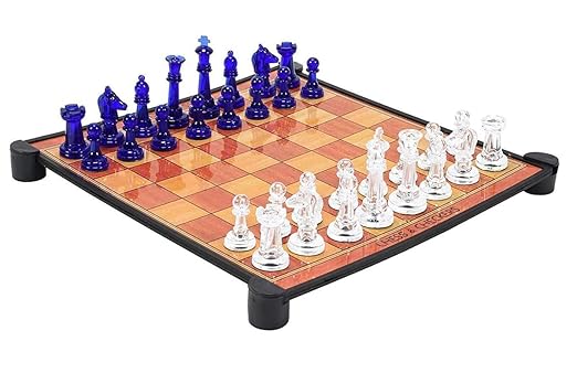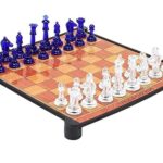 This set includes a magnetic chess board, dice, and colorful resin playing pieces with removable stands.