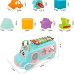 This multifunctional toy features a xylophone, shape sorter, push & go vehicle, and abacus for endless educational fun. It boosts cognitive skills, hand-eye coordination, counting, and rhythm while keeping kids engaged with its bright colors and friendly face. Made from durable, non-toxic materials, it’s safe, easy to handle, and perfect as a gift for toddlers.