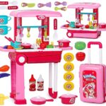 Kids Kitchen trolley Playset with Light & Sound – Portable Trolley Cooking Kit with Accessories